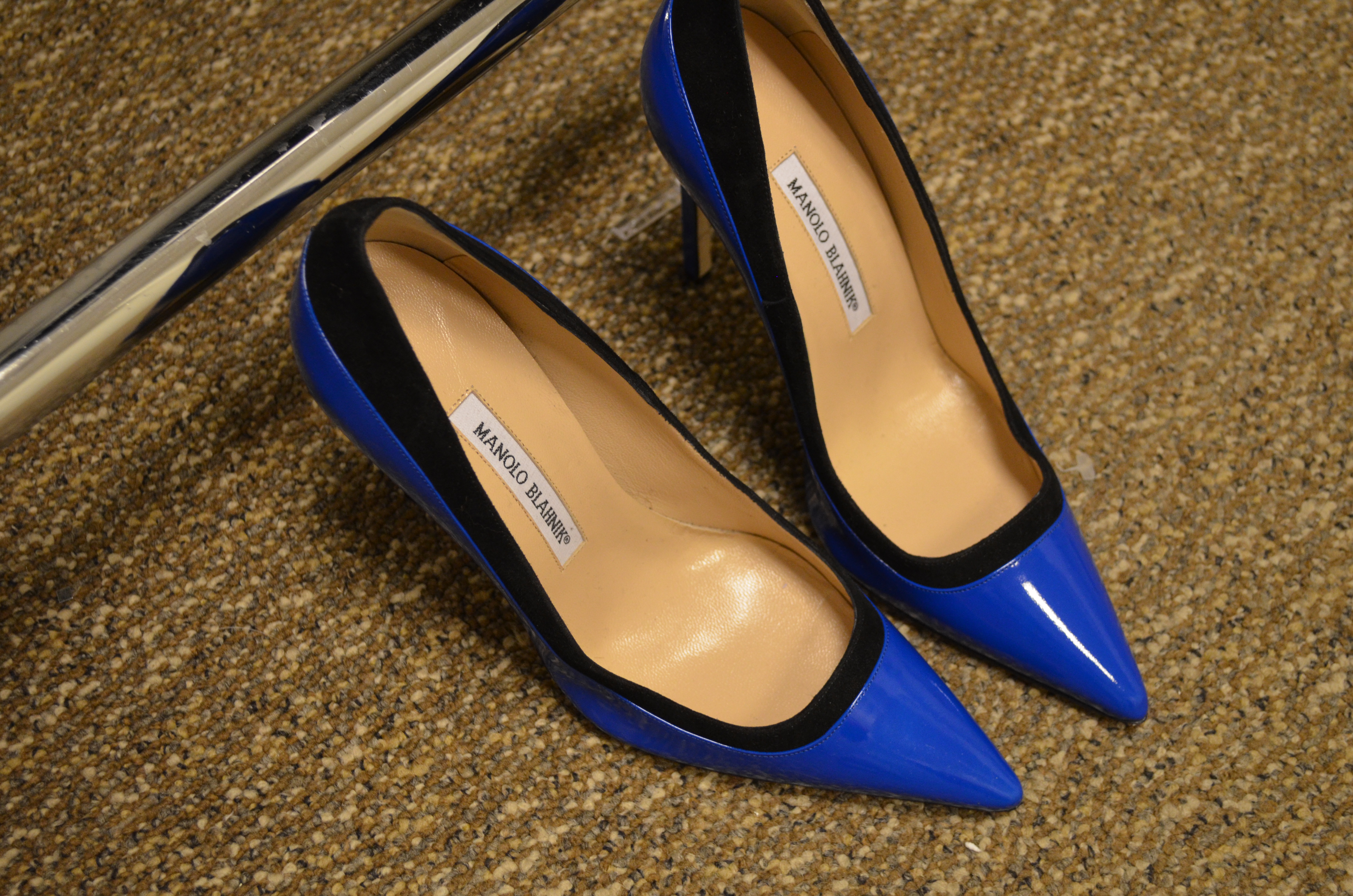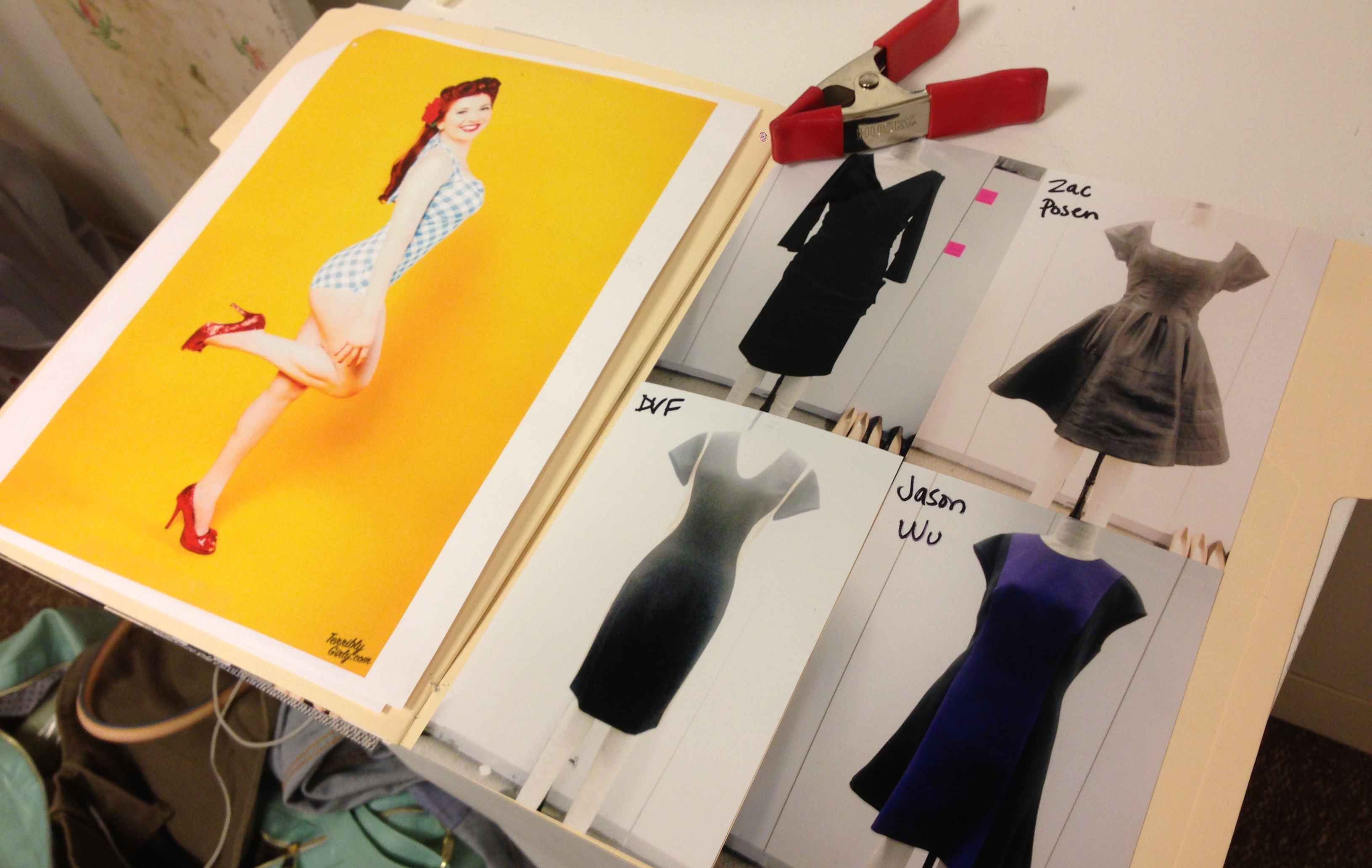 It’s no secret that I am not a sample size… so I was a little nervous about how they were planning to style my wardrobe. Then I laid eyes on my rack of killer dresses from Diane von Furstenberg, Zac Posen, Jason Wu, and Michael Kors and those fears quickly faded! I ended up wearing a beautiful black, curve-friendly Diane von Furstenberg dress (top left in the style board photo) and…wait for it… a pair of electric blue Manolo Blahniks. Hello, lover!