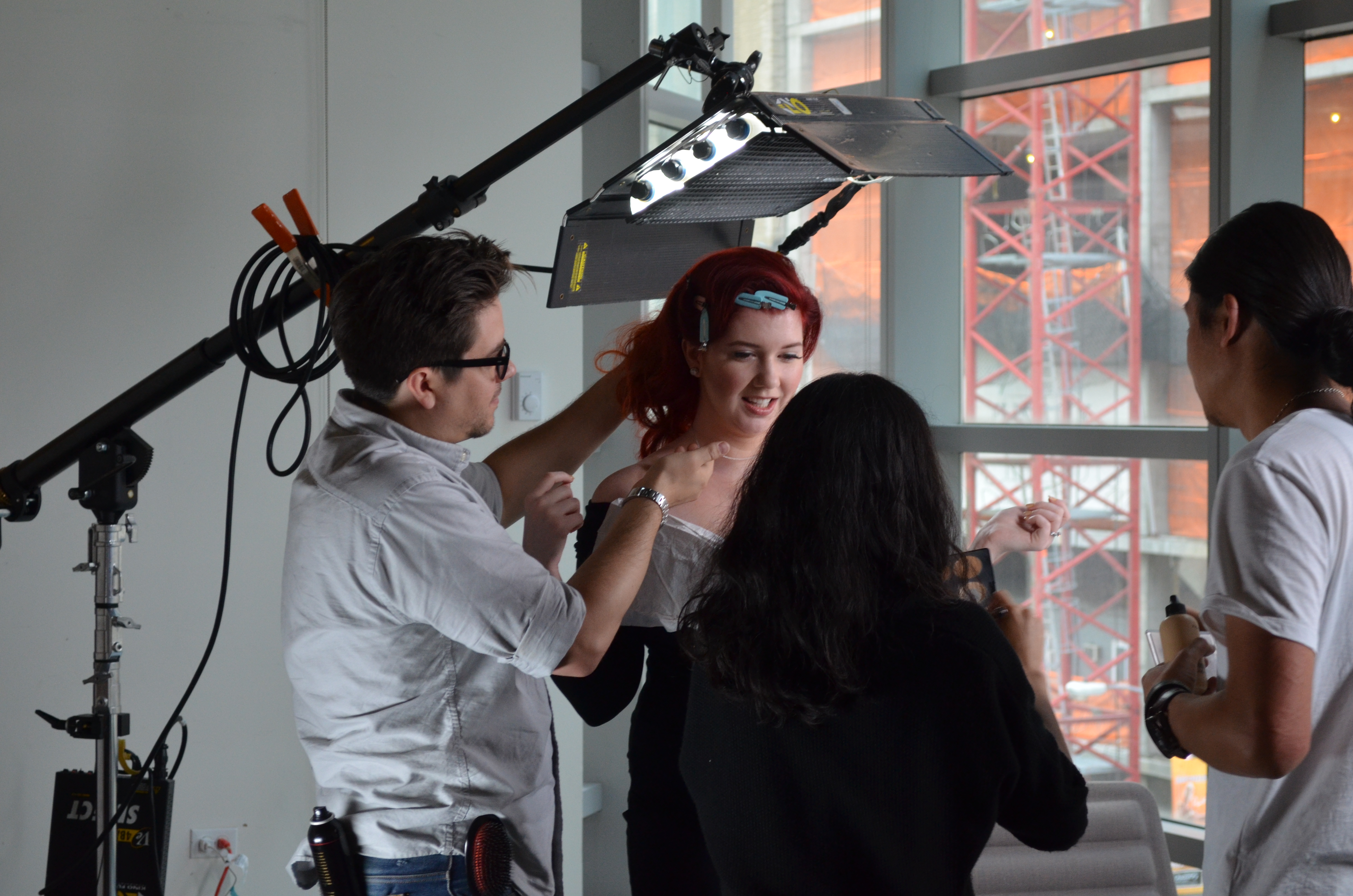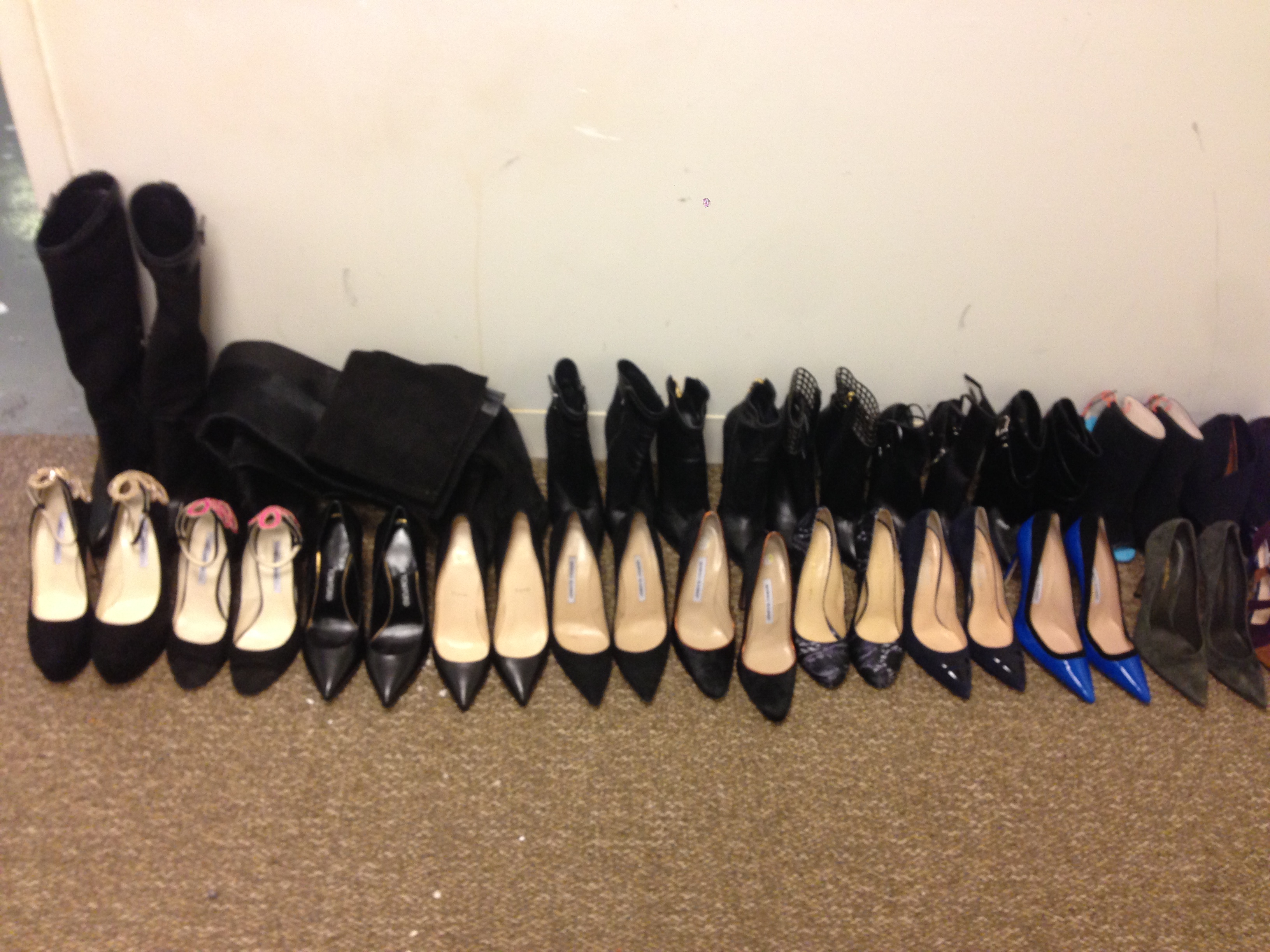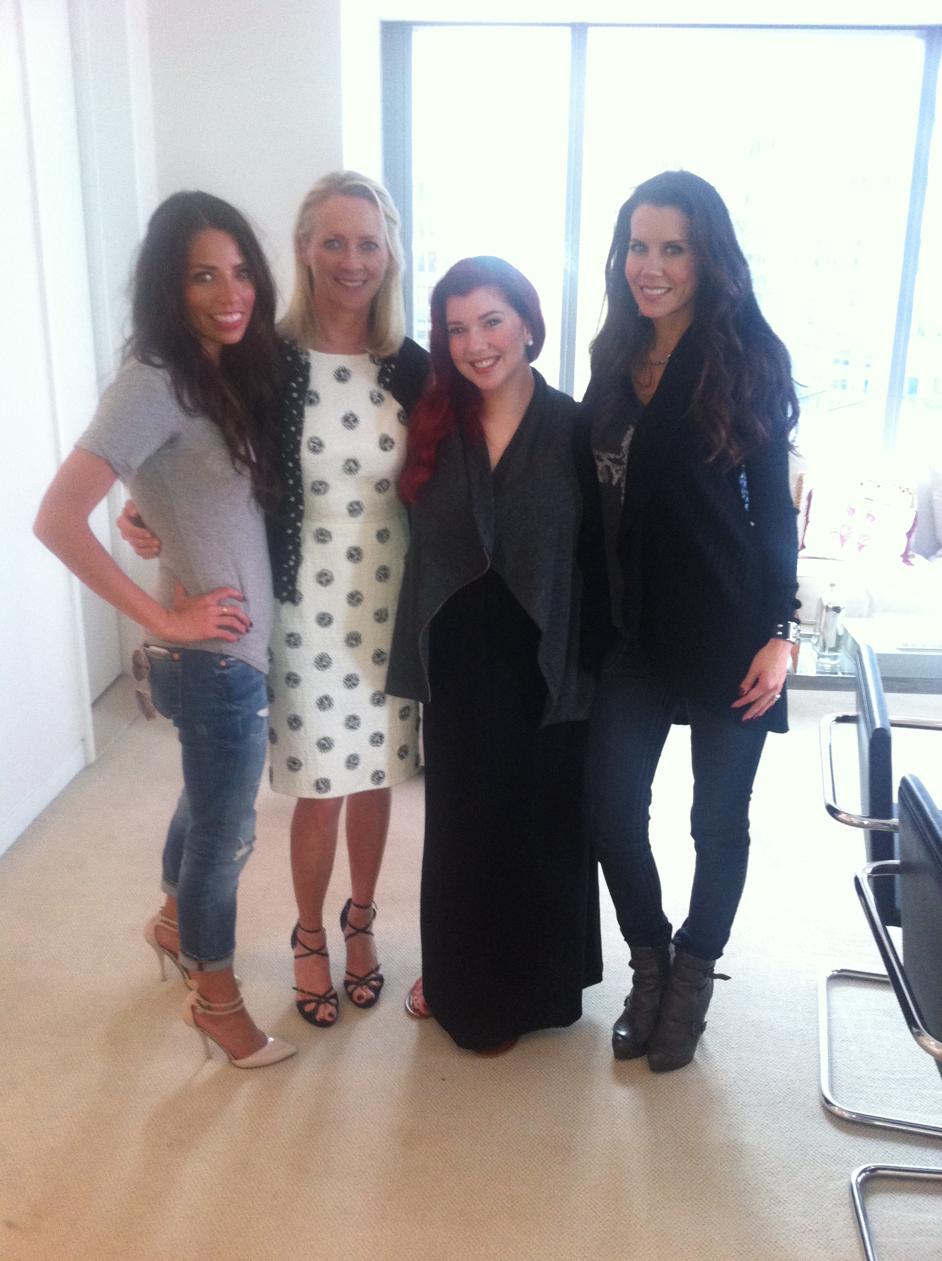The studio was incredible – almost as incredible as the rows of designer shoes awaiting my freshly pedicured feet. Cara, Tati (who are both just as sweet and beautiful as they are on their blogs, btw!) and I were whisked into a rotation of fashion fittings, manicures, makeup sessions, and hair styling.