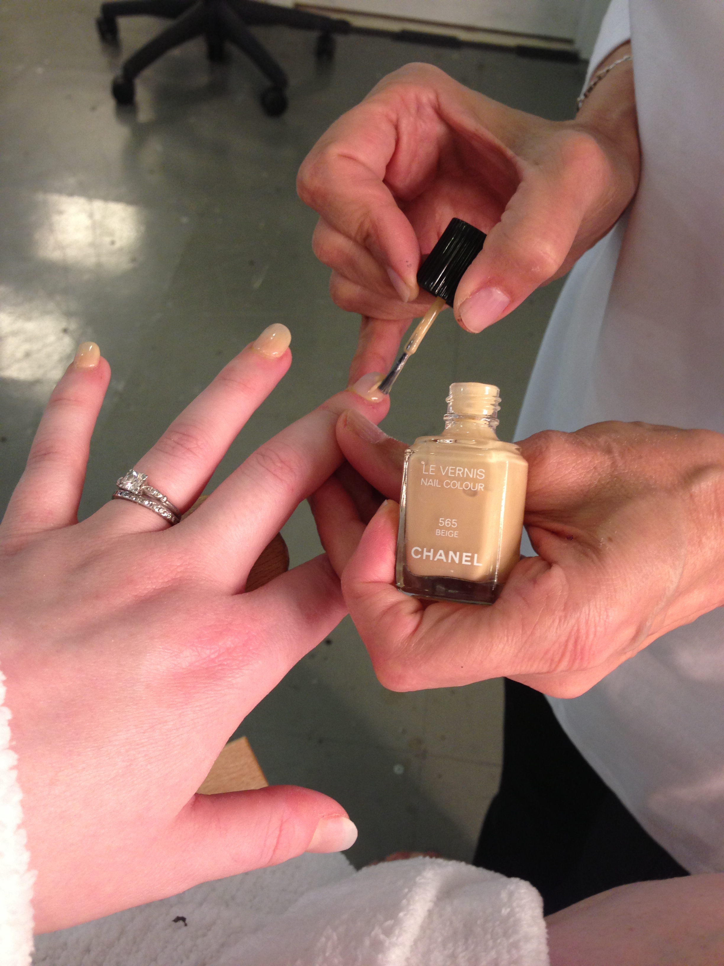 Nail expert (and longtime Marc Jacobs manicurist) Elisa Ferri toned down my bright summer nails to create a more season appropriate look for the fall issue. She used Chanel Le Vernis Nail Colour in Beige. It’s a gorgeous neutral tone with a subtle iridescent shine. I never want to take it off.
