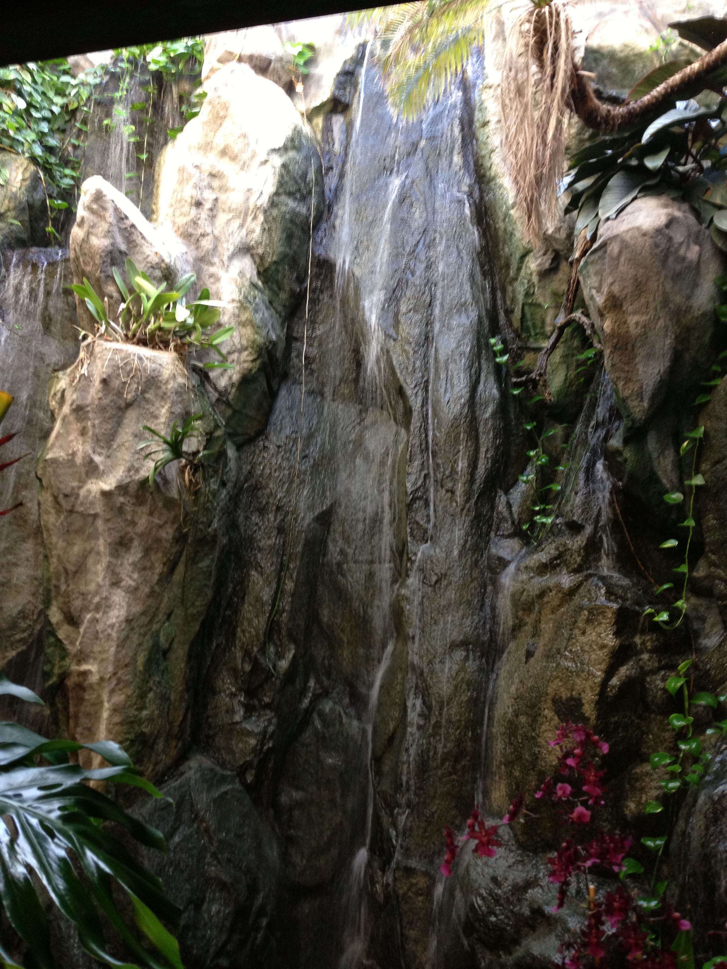 The rock waterfall at the entrance to the check-in area at Beverly Hot Springs Spa.